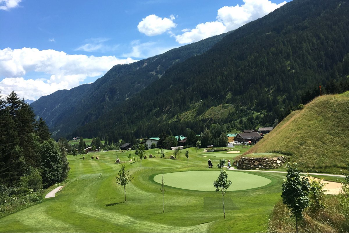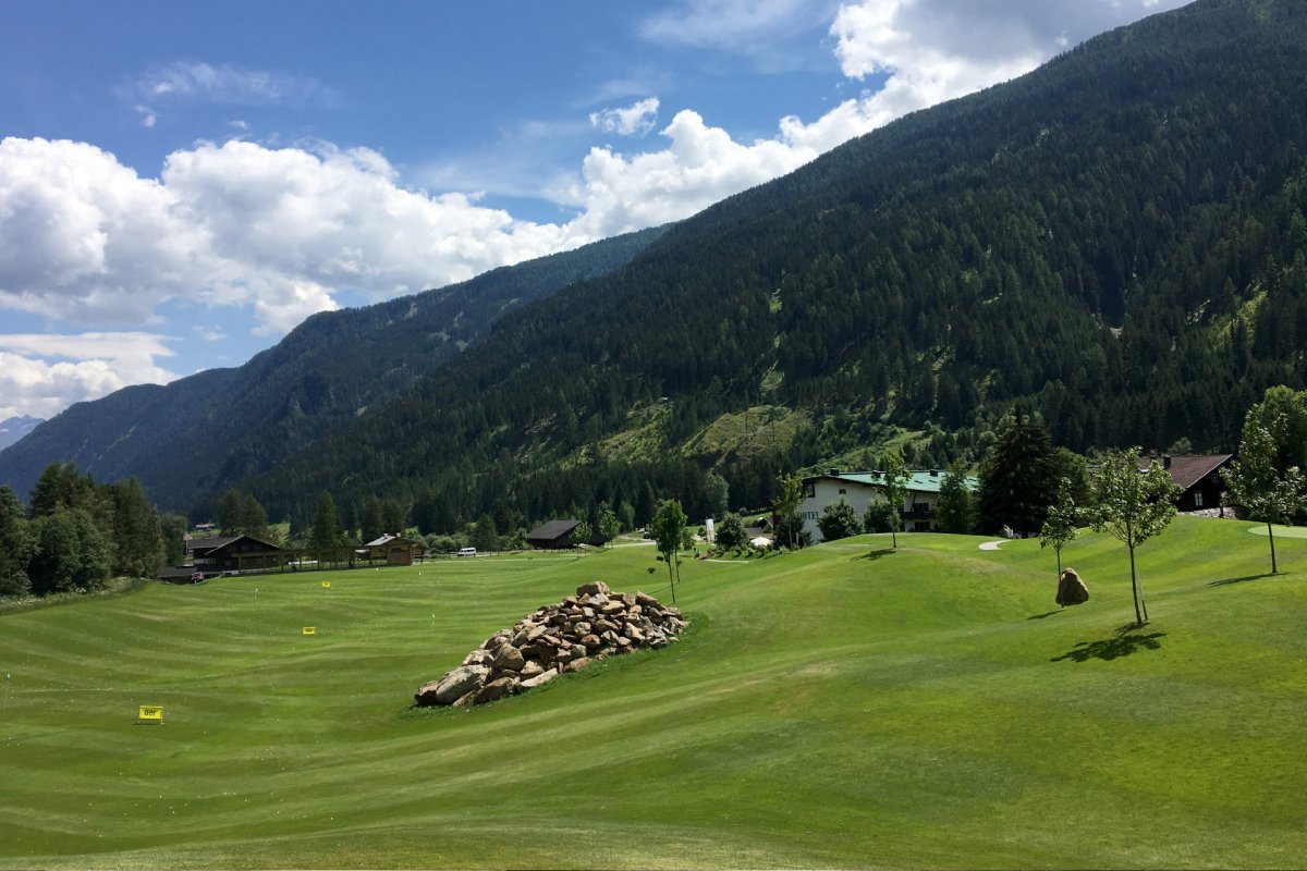 Der nahe Golfplatz besticht mit atemberaubender Bergkulisse.